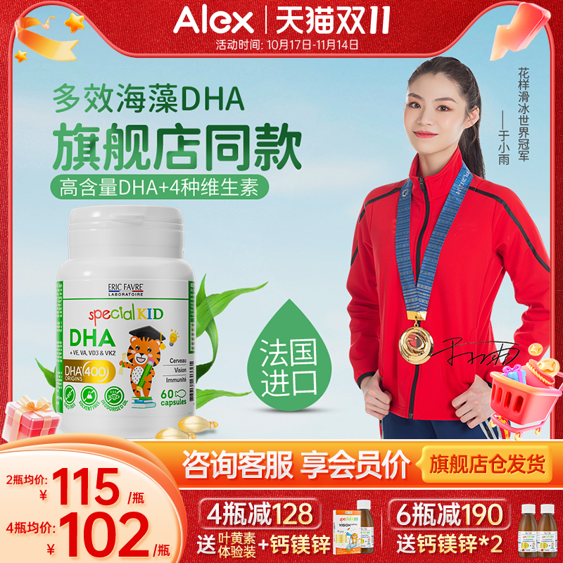 艾瑞可dha婴幼儿海藻油宝宝儿童藻油dha婴儿非鱼肝油营养胶囊法国