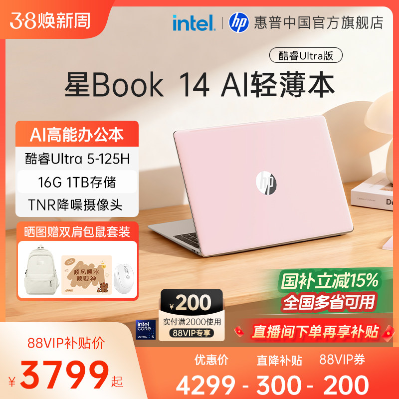 【国家补贴15%】HP/惠普可选星Book Pro14英特尔酷睿ultra5轻薄