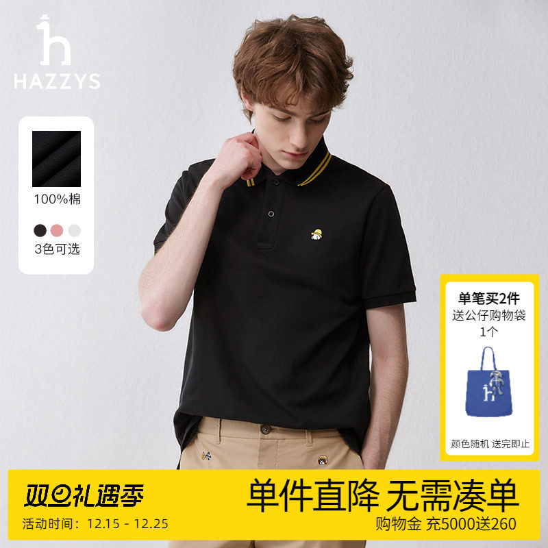 Hazzys哈吉斯奥莱夏季男士短袖T恤衫纯棉韩版宽松polo潮流上衣