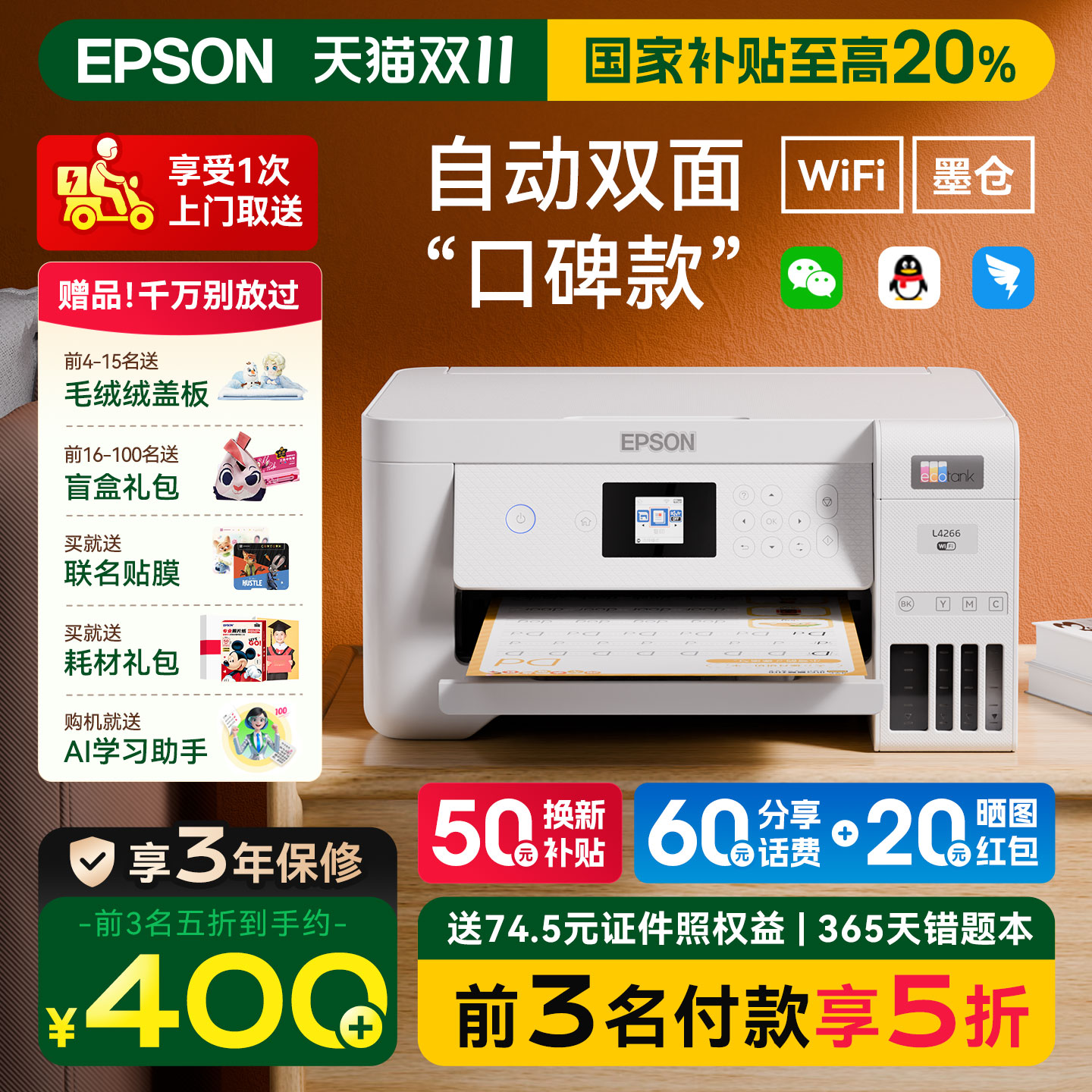 【政府补贴20%】爱普生墨仓式打印机自动双面家用小型L4266/4268/426