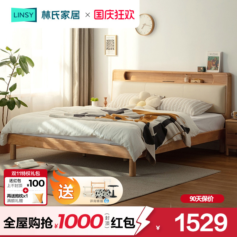林氏家居北欧全实木双人床卧室小户型现代简约多功能1.8米1.5m床