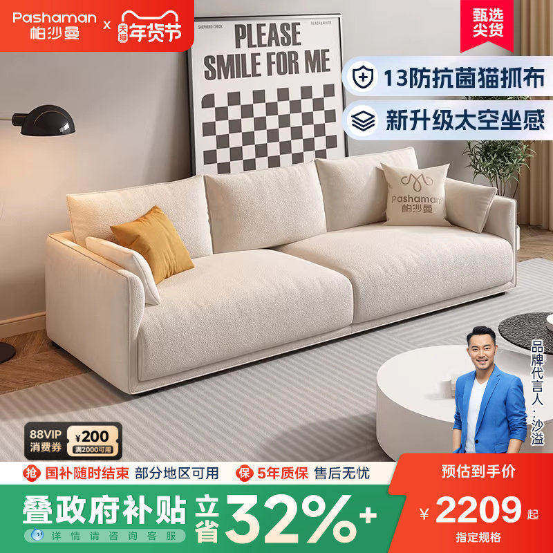 帕沙曼新款布艺沙发小户型客厅北欧简约奶油风模块直排猫抓布宠物