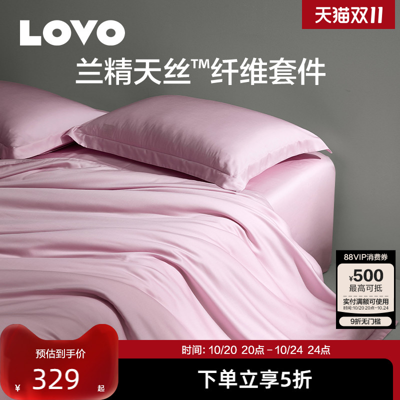 罗莱生活LOVO乐蜗床上冰丝四件套兰精天丝被套凉滑床单三件套夏季