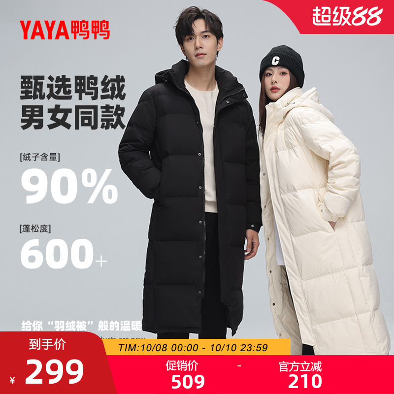 鸭鸭羽绒服男女同款中长款2025年秋冬反季过膝加长加厚鸭绒外套Y