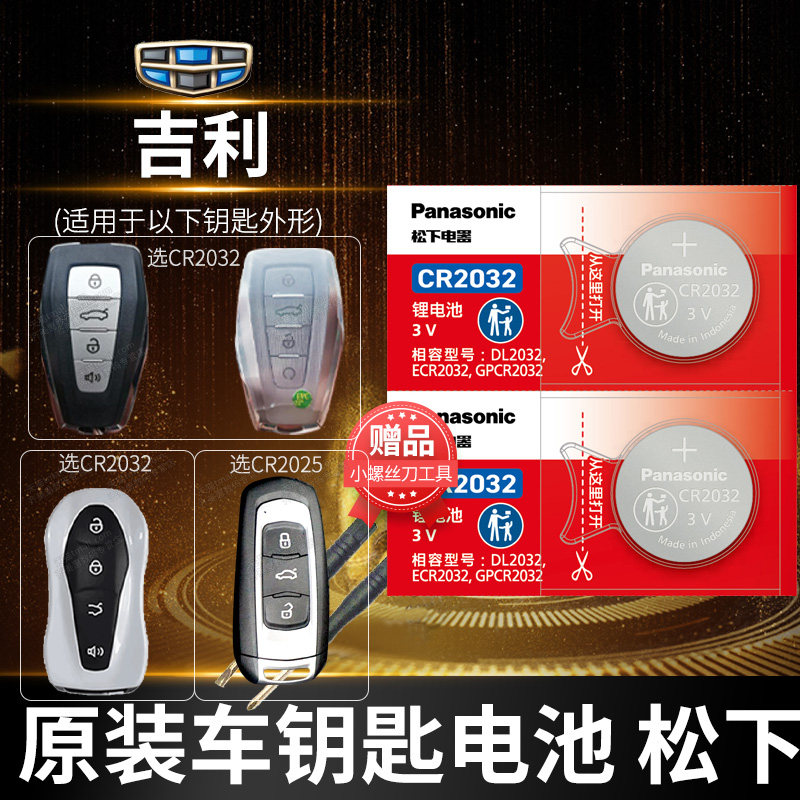 • 泡美丽»»适用于吉利GL帝豪GS缤瑞 博瑞博越EC7领克X6远景x3遥控器汽车钥匙电池原装