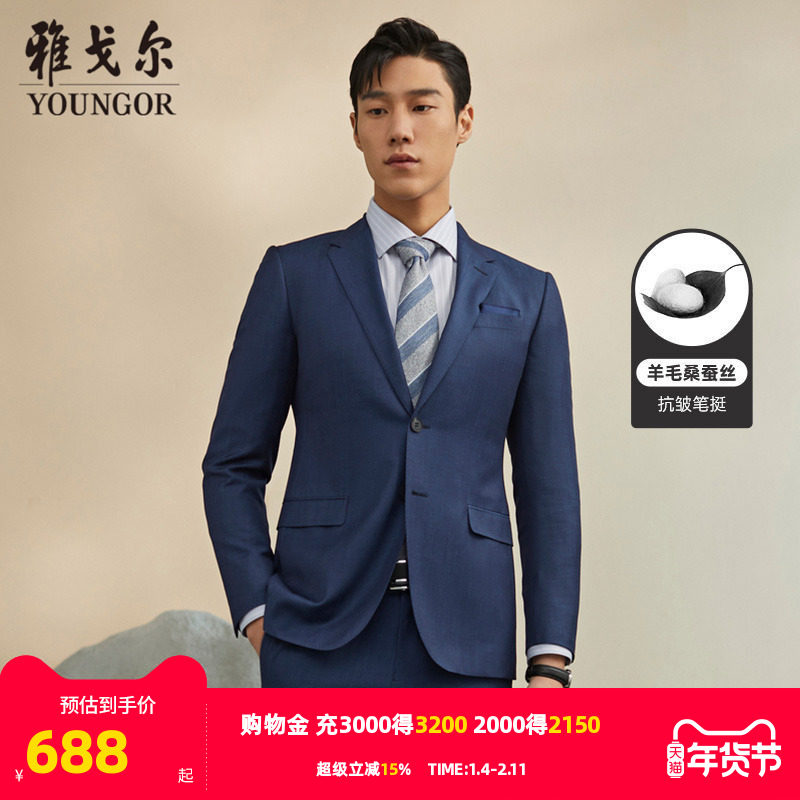 雅戈尔男士西服秋季新款官方商务休闲桑蚕丝抗皱羊毛西装上衣4627