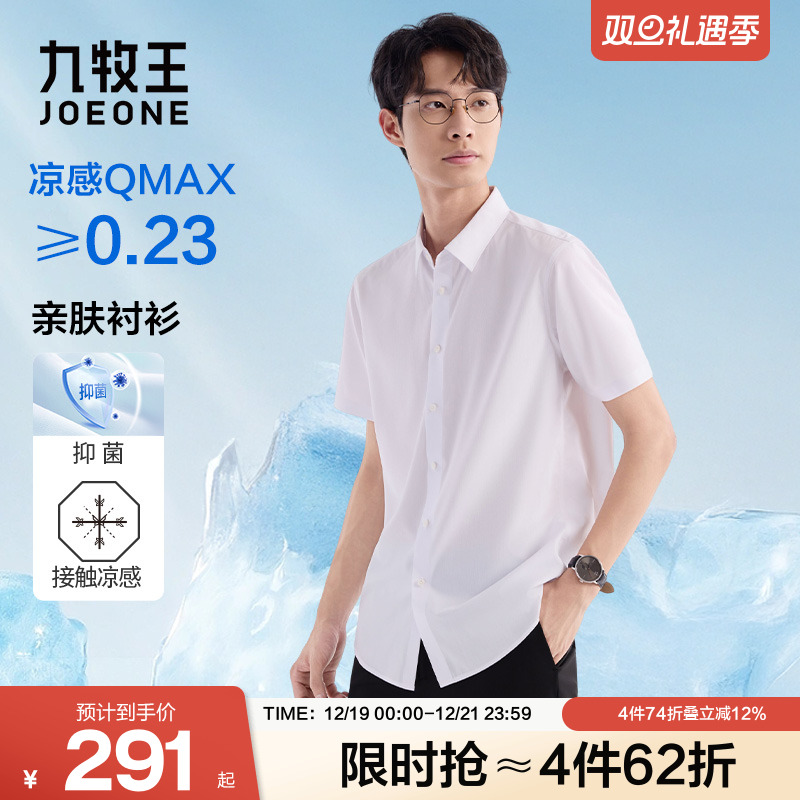 • 泡美丽»»九牧王易打理冰丝衬衣25春夏新款桑蚕丝凉感抑菌短袖衬衫男士