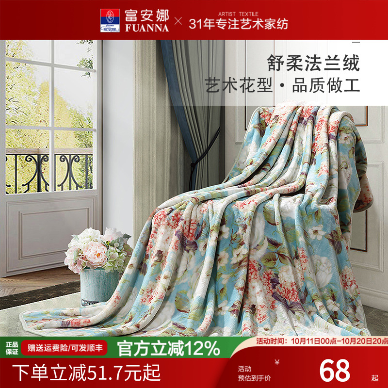 富安娜珊瑚绒法兰绒毛毯被午睡盖毯沙发毛巾盖被保暖空调毯床单