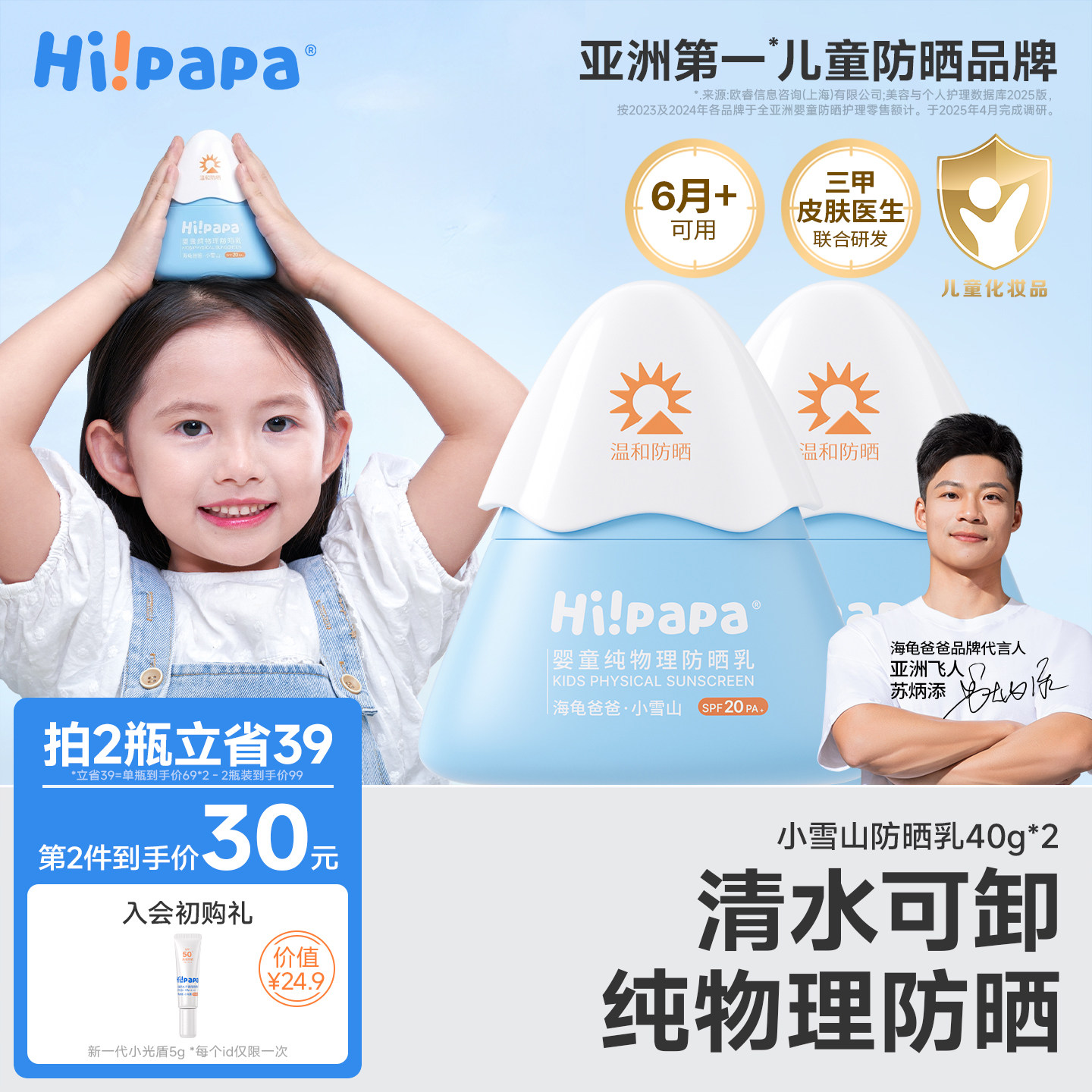 海龟爸爸儿童防晒霜小雪山防晒宝宝专用隔离紫外线婴儿物理防晒乳