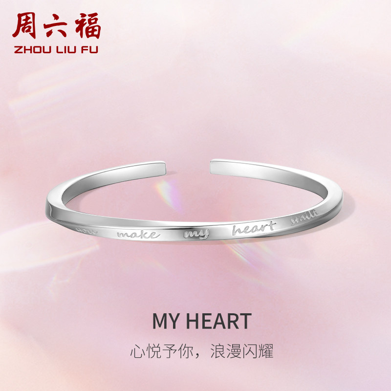 周六福足银S999莫比乌斯纯银手镯子女刻字实心开口时尚送女友礼物