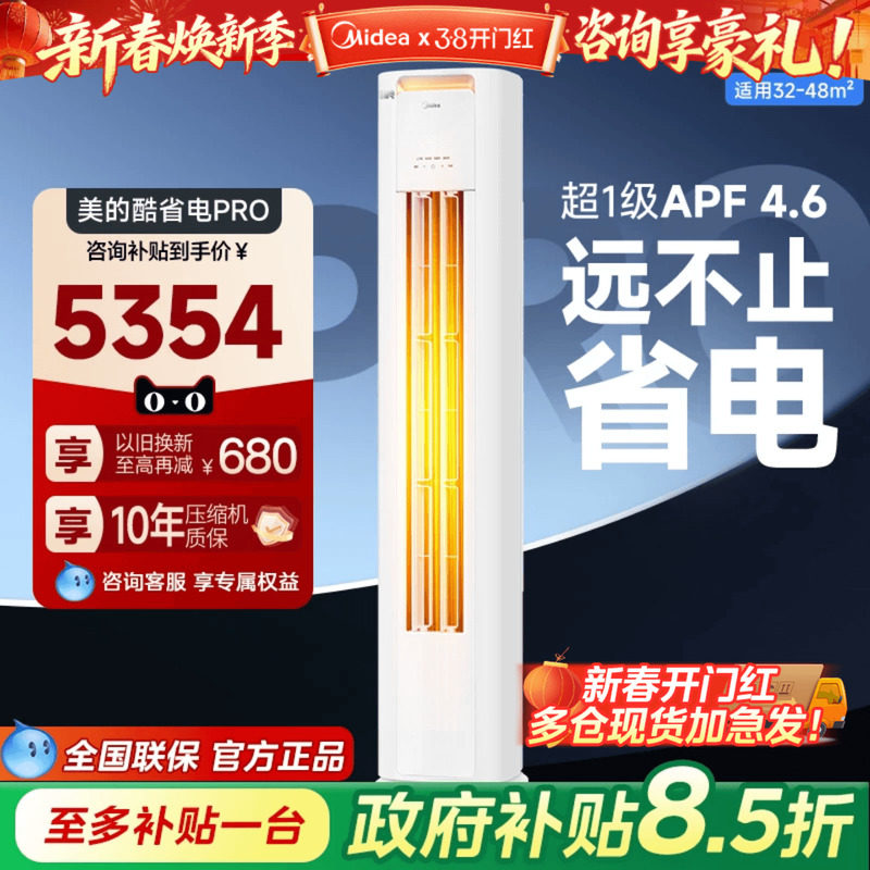 【政府补贴】美的空调酷省电3匹2匹柜机立式一级能效变频冷暖家用