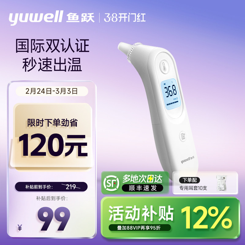 鱼跃耳温枪电子体温计无水银医用家用高精准老人婴儿童专用YHT101