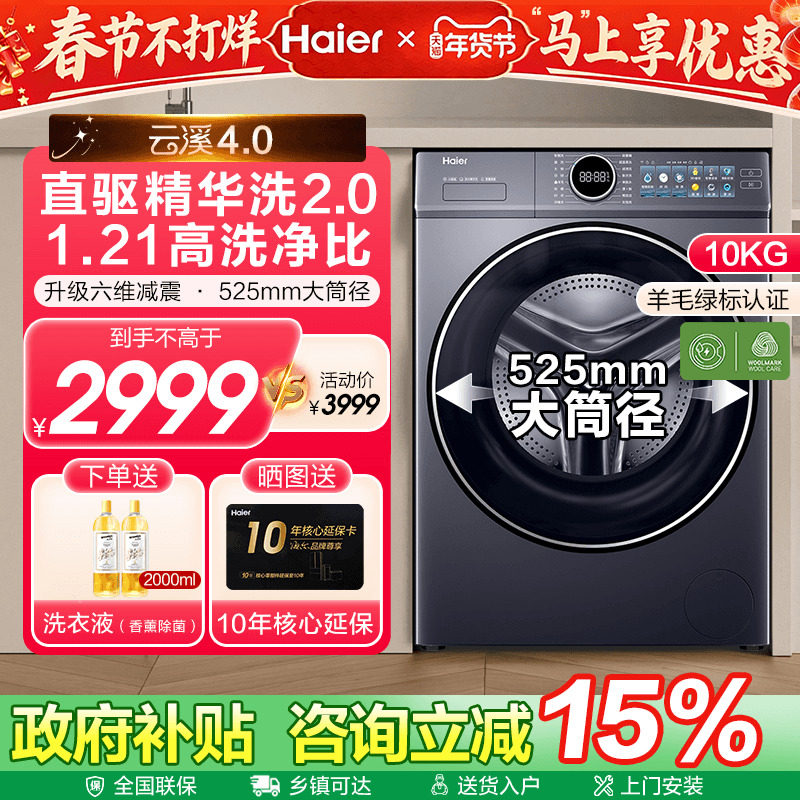 [官仓]海尔云溪4.0滚筒精华洗衣机超薄直驱10kg全自动家用77E旗舰