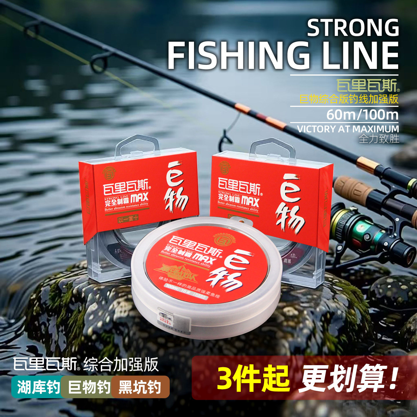 瓦里瓦斯鱼线大物线青鱼巨物钓线60米进口尼龙强拉力主线柔软子线