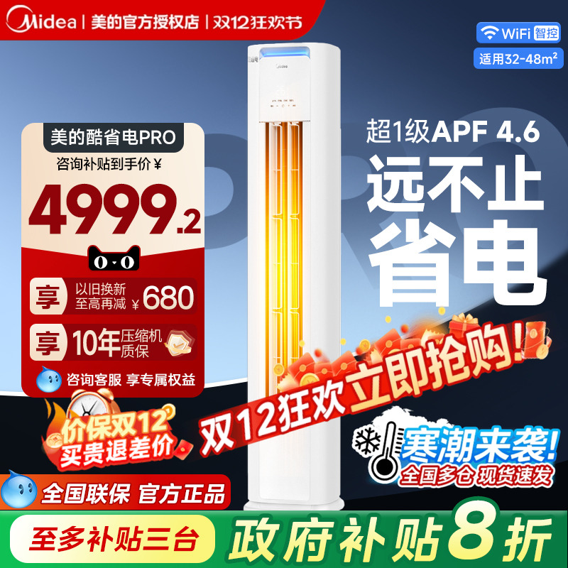 【政府补贴】美的空调酷省电3匹2匹柜机立式一级能效变频冷暖家用