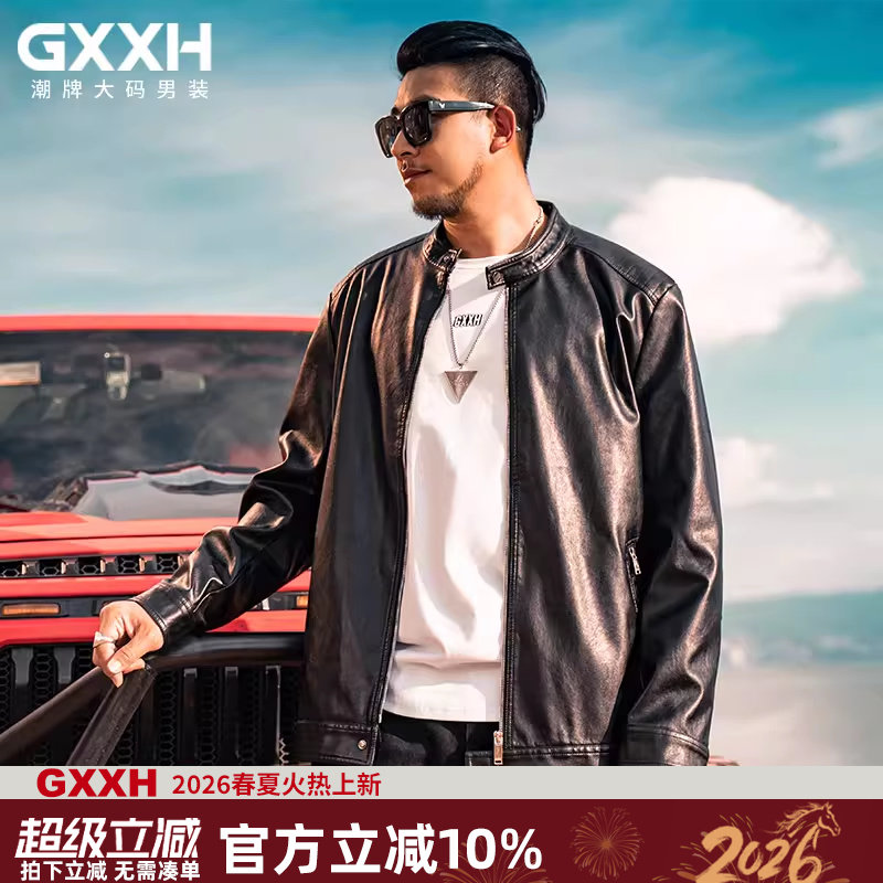 GxxH大码男装潮牌加肥加大皮衣外套潮胖子宽松长袖防风夹克机车服