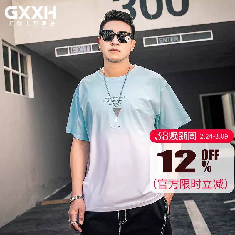GxxH大码男装夏新款胖子加肥加大号纯色圆领宽松简约男士短袖t恤