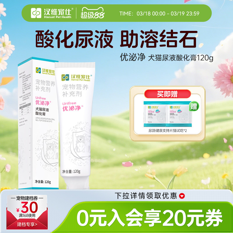 汉维宠仕优泌净尿石猫咪狗狗促进排石尿结石尿液酸化膏消清尿通
