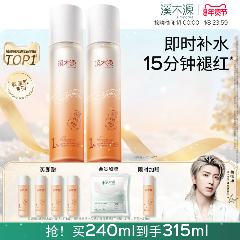 • 泡美丽»»溪木源山茶花精华水敏感肌舒缓褪红保湿爽肤水护肤修护补水湿敷水