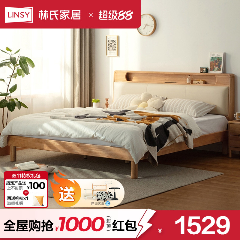 林氏家居北欧全实木双人床卧室小户型现代简约多功能1.8米1.5m床