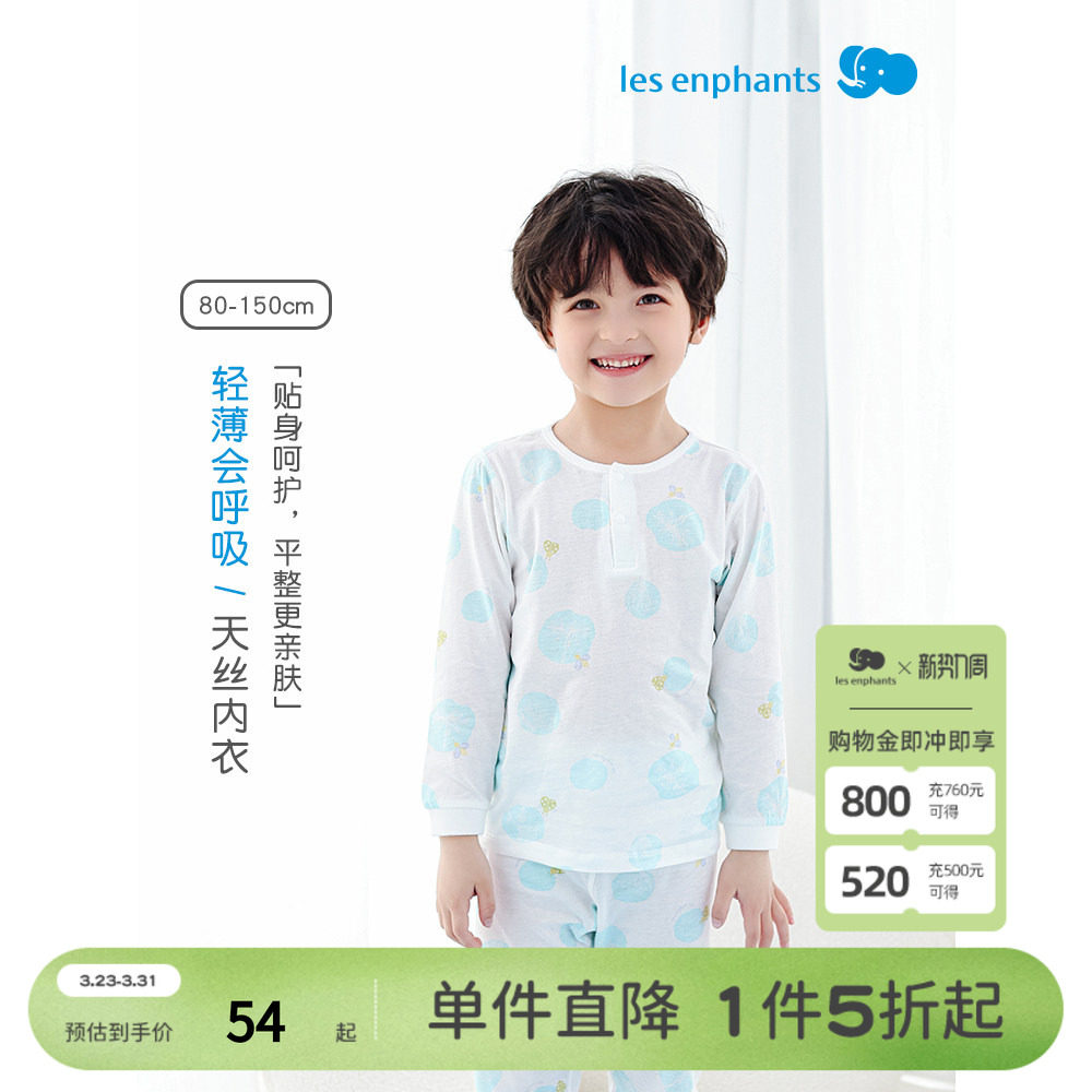 丽婴房儿童秋衣秋裤天丝内衣套装男女童薄空调家居服宝宝长袖睡衣
