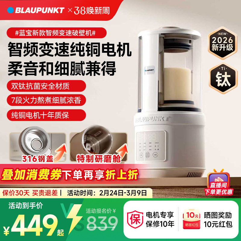 德国蓝宝柔音破壁机家用全自动豆浆机静低噪音无渣辅食料理机新款