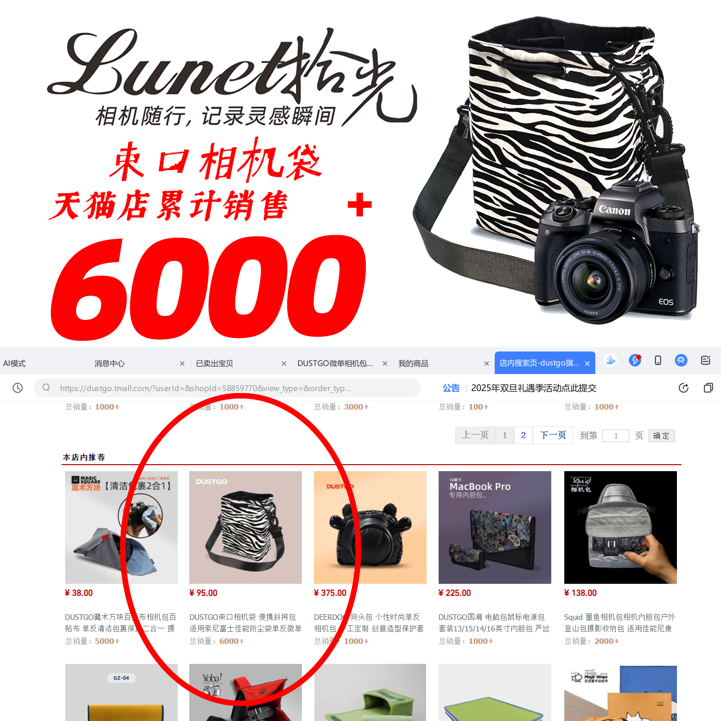DUSTGO束口相机袋 便携斜挎包适用索尼富士佳能防尘袋单反微单休闲旅行收纳包
