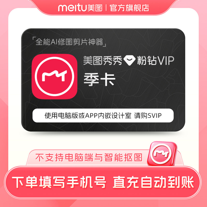 【官方正品】美图秀秀粉钻vip季卡3个月91天美颜p图修图会员直充