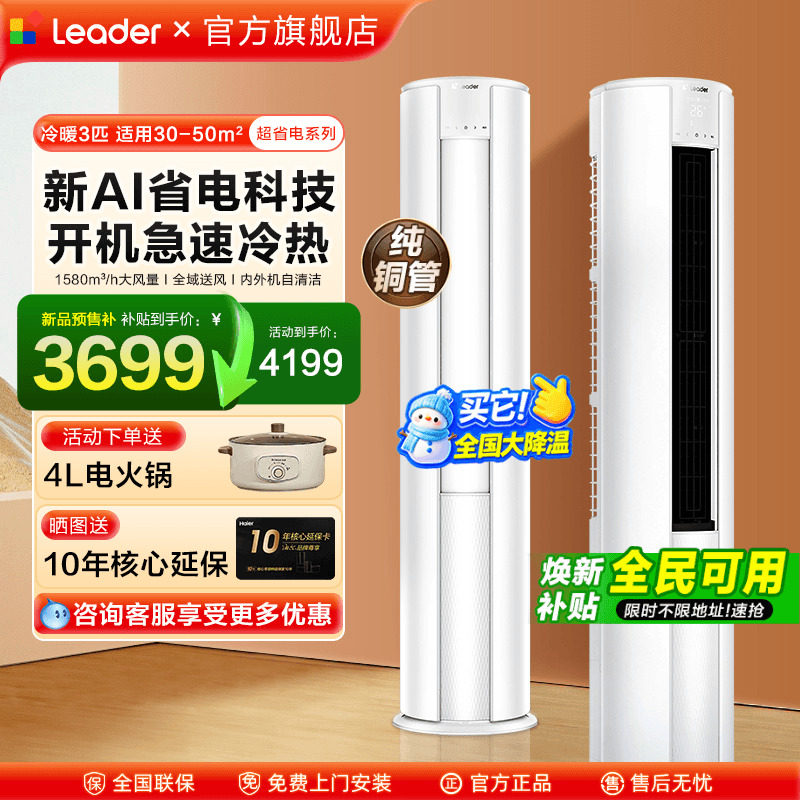 新品海尔空调大3匹Leader柜机2P立式空调客厅一级能效家用旗舰店
