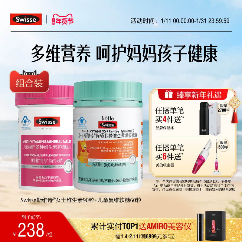 Swisse斯维诗蓝帽儿童复合维生素补锌男女士维生素e维b免疫力官方