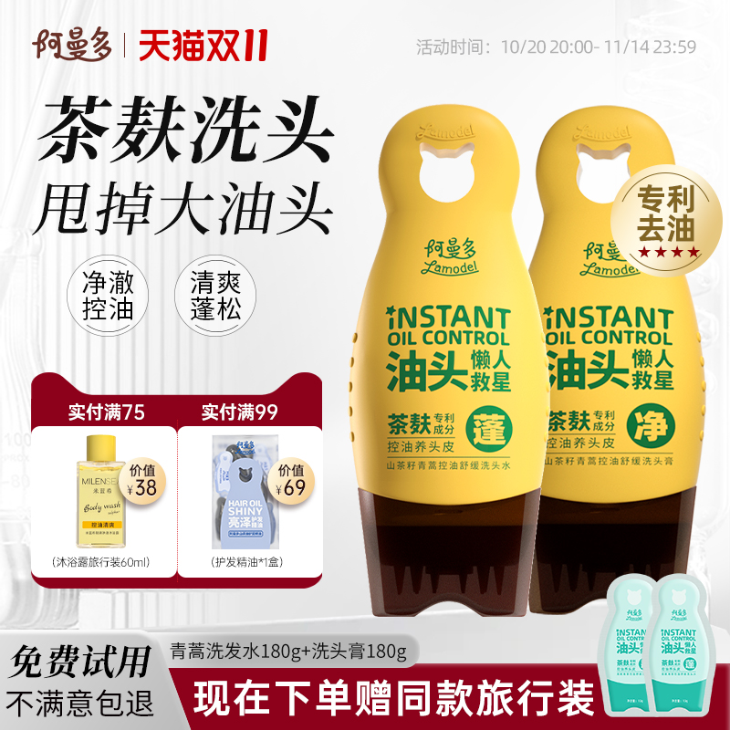 阿曼多茶麸洗发水控油蓬松洗头膏青蒿山茶籽油头学生洗发露男女用