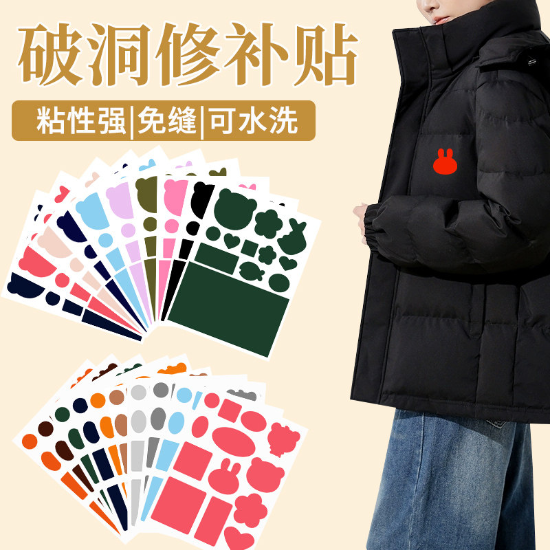羽绒服补丁贴补衣服破洞无痕免缝修复修补贴强自粘补衣贴纯色布贴