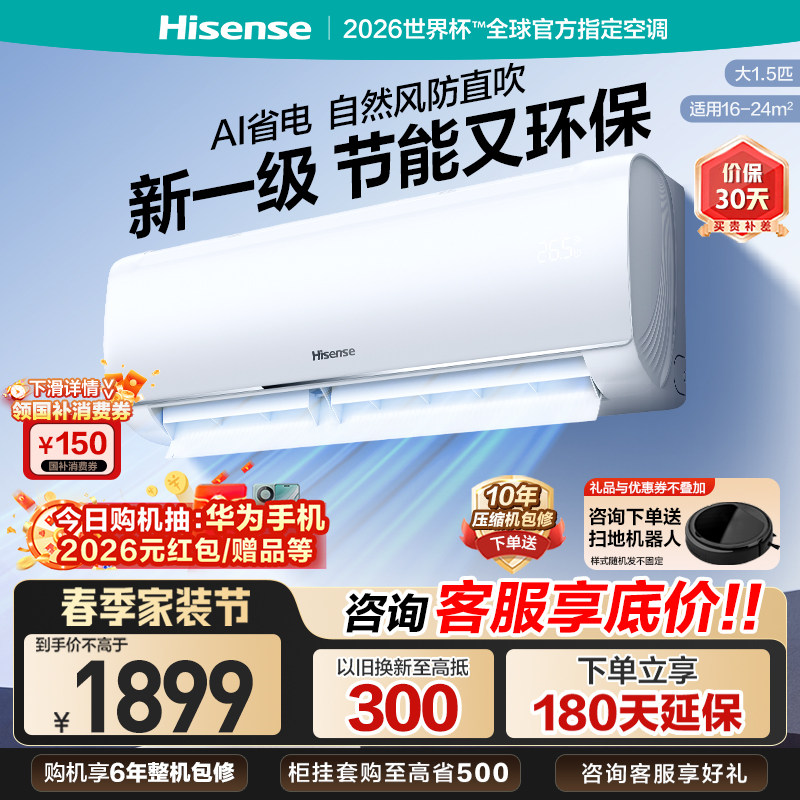 海信空调智省电挂机1.5匹2匹3匹一级变频冷暖两用卧室客厅挂机
