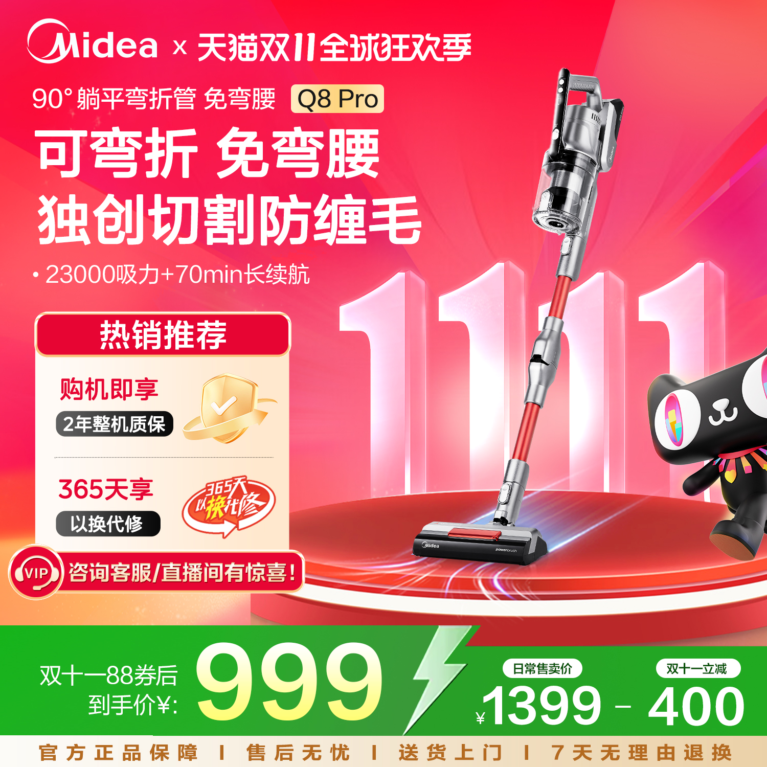 美的无线手持吸尘机免弯腰弯折吸拖一体宠物地毯防缠绕技术Q8 Pro