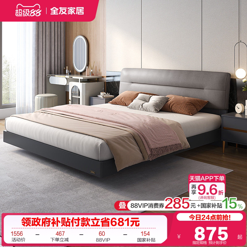 全友家居现代简约软包板式床1米8主卧床收纳储物床轻奢双人大床