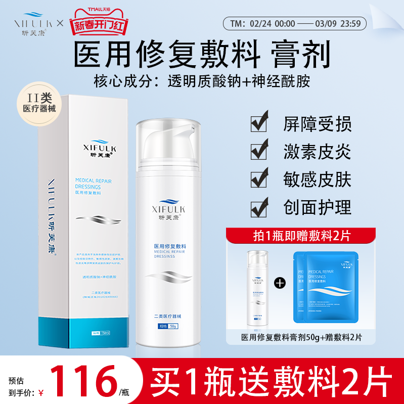 • 泡美丽»»昕芙康乳膏剂50g 医用皮肤敷料激素皮炎敏感肌护理旗舰店惠普芙丽