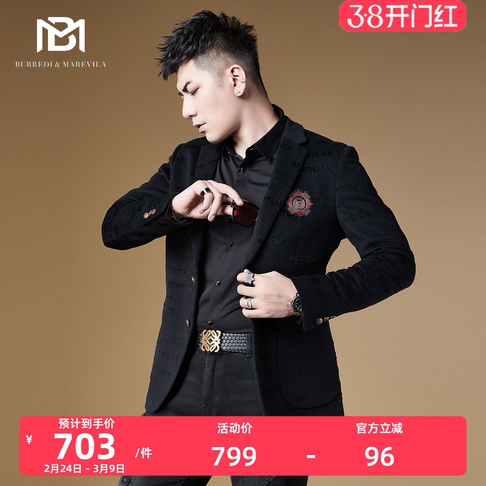 BM轻奢男装高级感刺绣羊毛西装外套男正装潮2023新款男士休闲西服