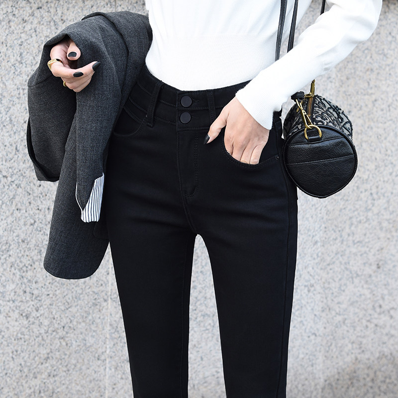 黑色牛仔裤女2025春秋新款高腰弹力紧身百搭显瘦铅笔九分小脚长裤
