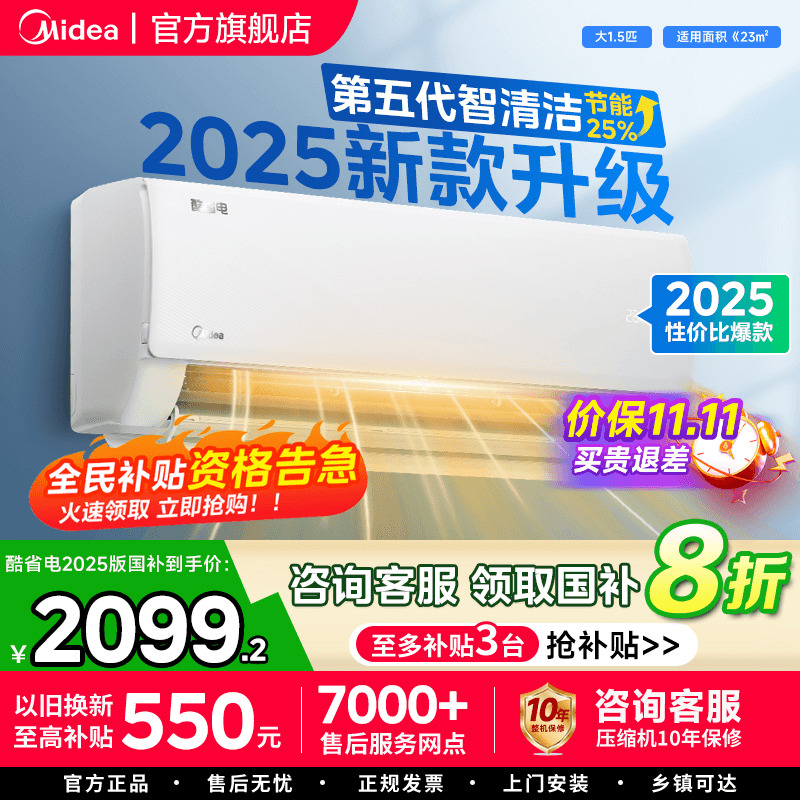 美的空调新一级家用大1.5匹2匹变频冷暖挂机2025款官方正品酷省电