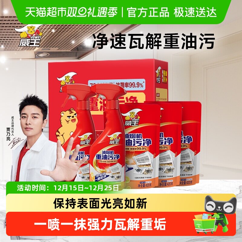 威王油烟机清洁剂去污剂500g*2瓶+420g*3袋去神器油污净清洗剂