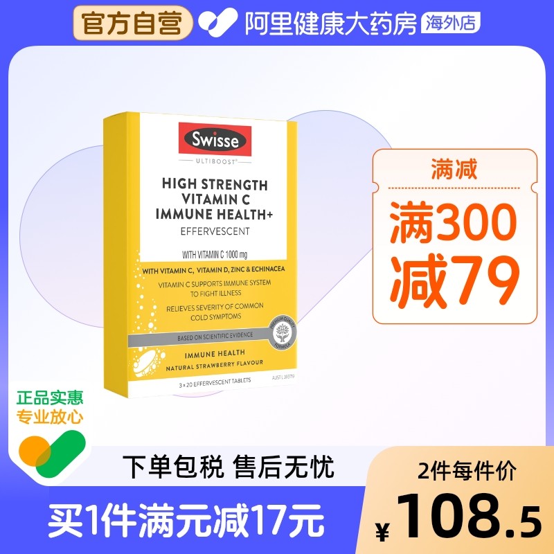 Swisse斯维诗高浓度维生素C锌紫锥菊维生素D泡腾片*60片澳洲进口