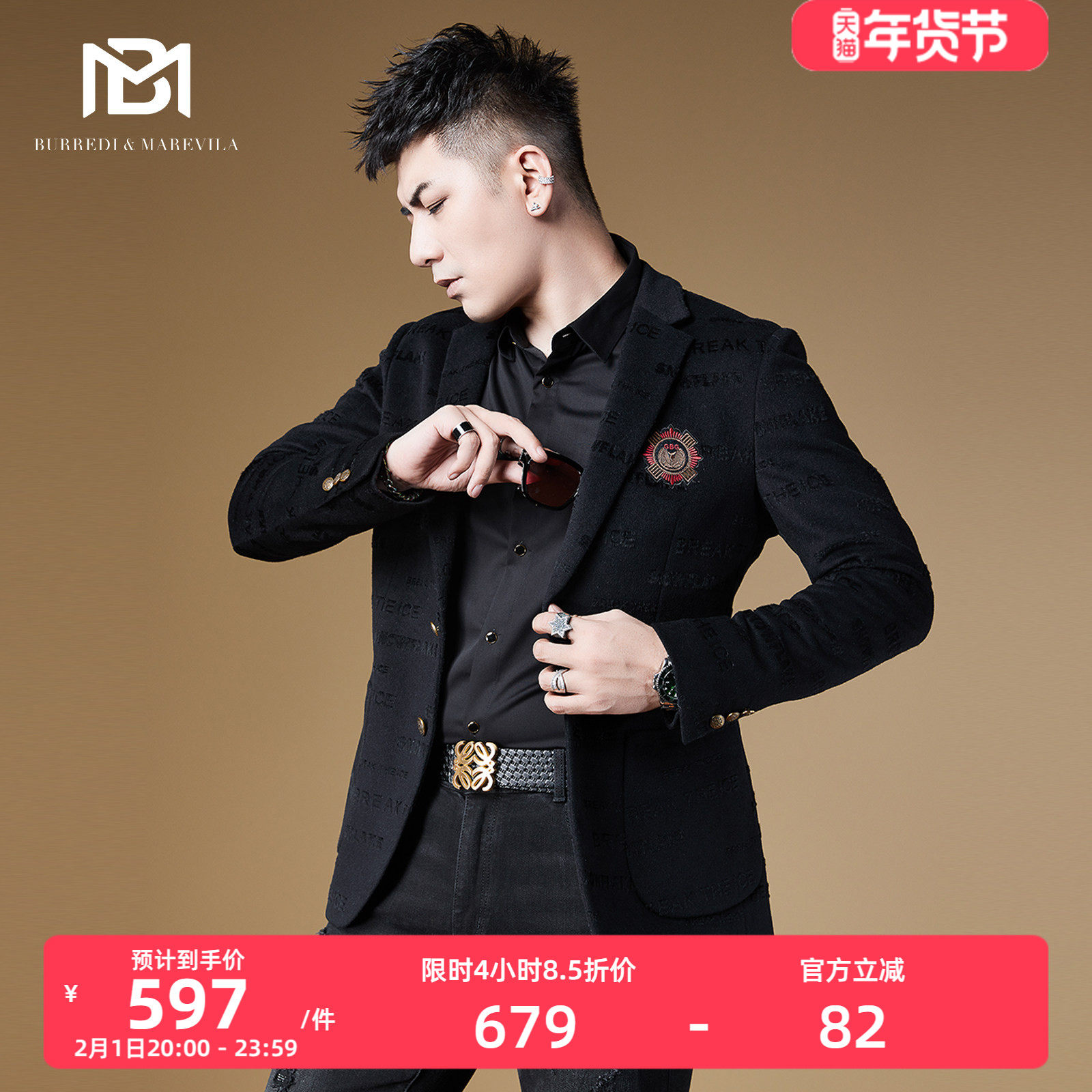 • 泡美丽»»BM轻奢男装高级感刺绣羊毛西装外套男正装潮2023新款男士休闲西服