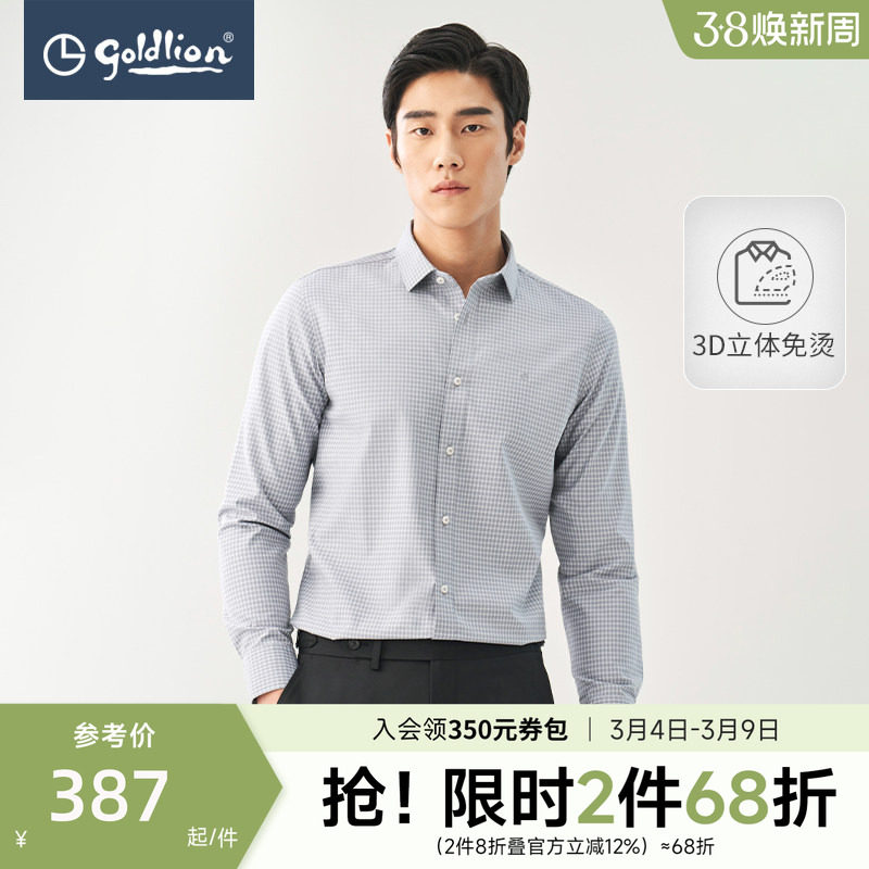 【3D免烫一代】金利来春夏新款男长绒棉弹力抗皱正装长袖衬衫