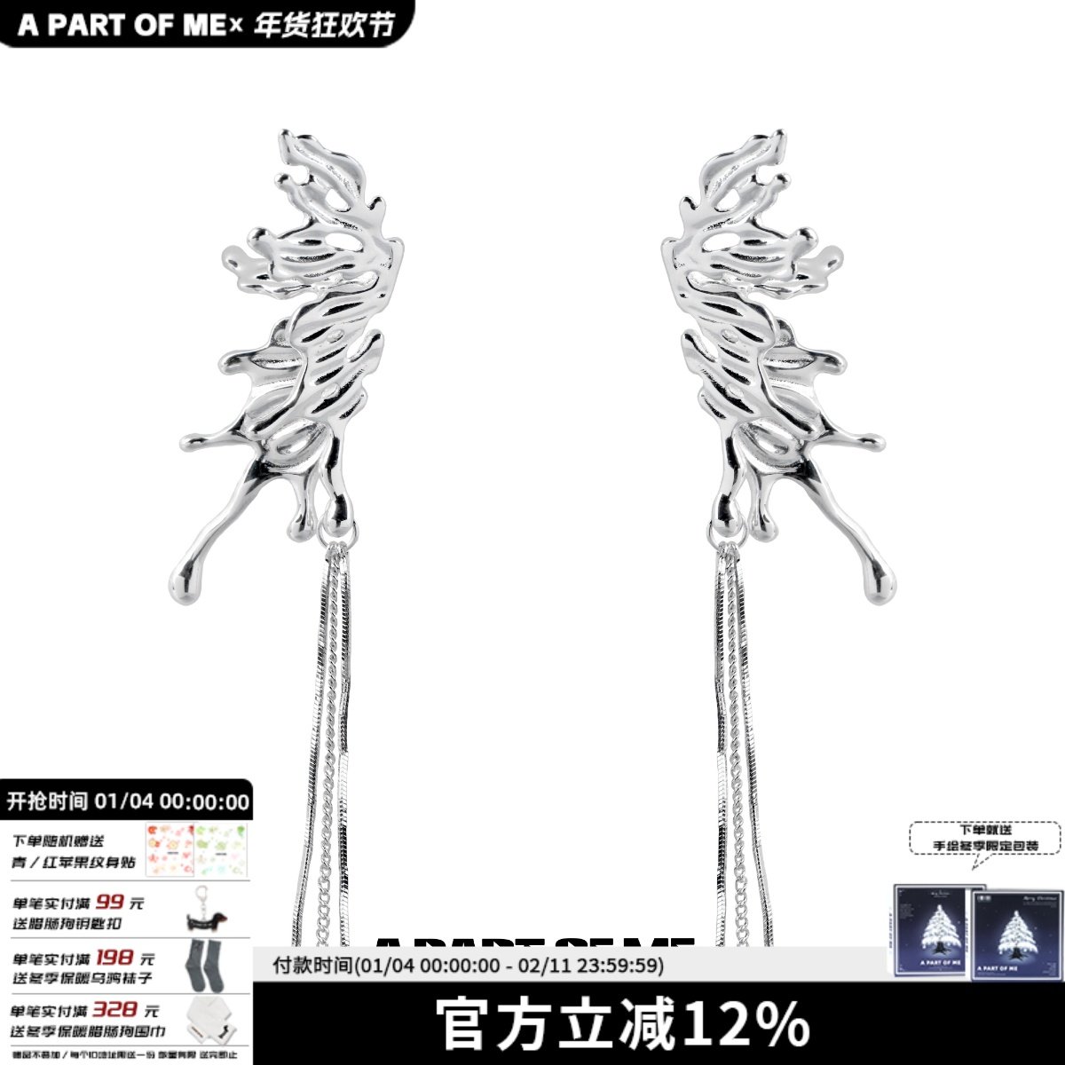 • 泡美丽»»原创失灵蝴蝶耳环液体金属风耳夹流苏耳饰小众S925银针耳钉