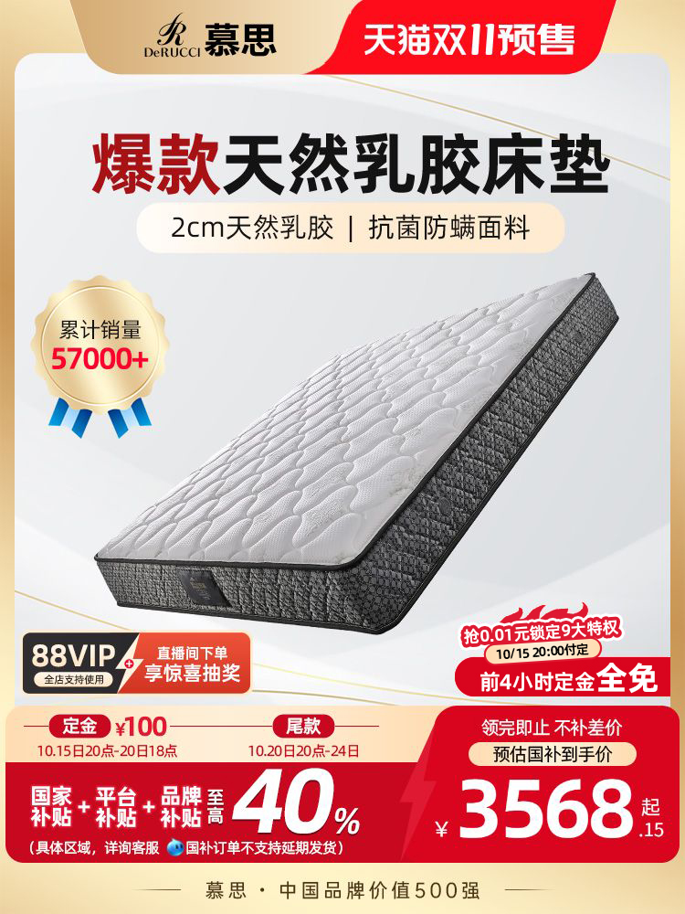 慕思官方天然乳胶床垫席梦十大慕斯独立筒弹簧厚硬垫子家用
