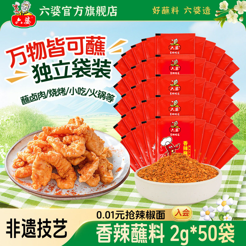 六婆辣椒面干碟蘸料2g*50袋香辣四川火锅伴侣辣椒粉小包