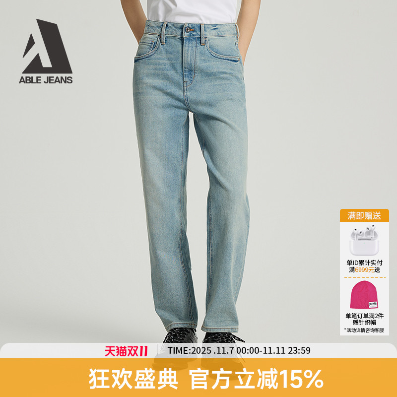 ABLE JEANS【老爹裤】新款女士复古洗水宽松舒适弹力锥形牛仔长裤