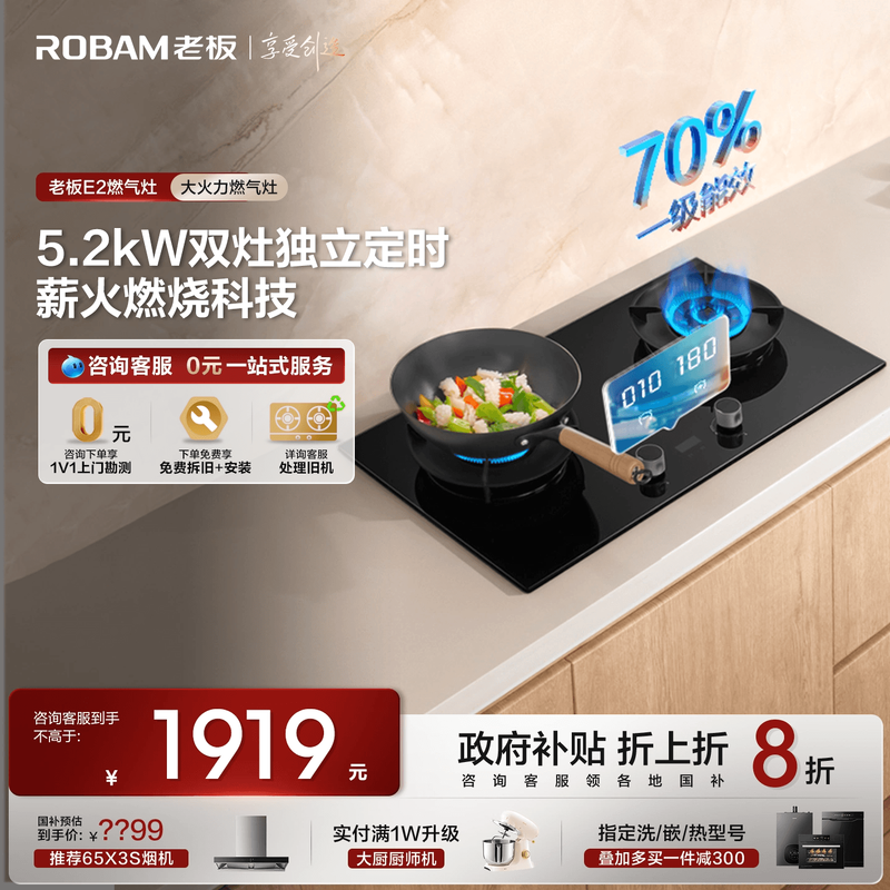 [以旧换新]老板燃气灶E2煤气灶定时灶家用双灶台天然气官方旗舰店