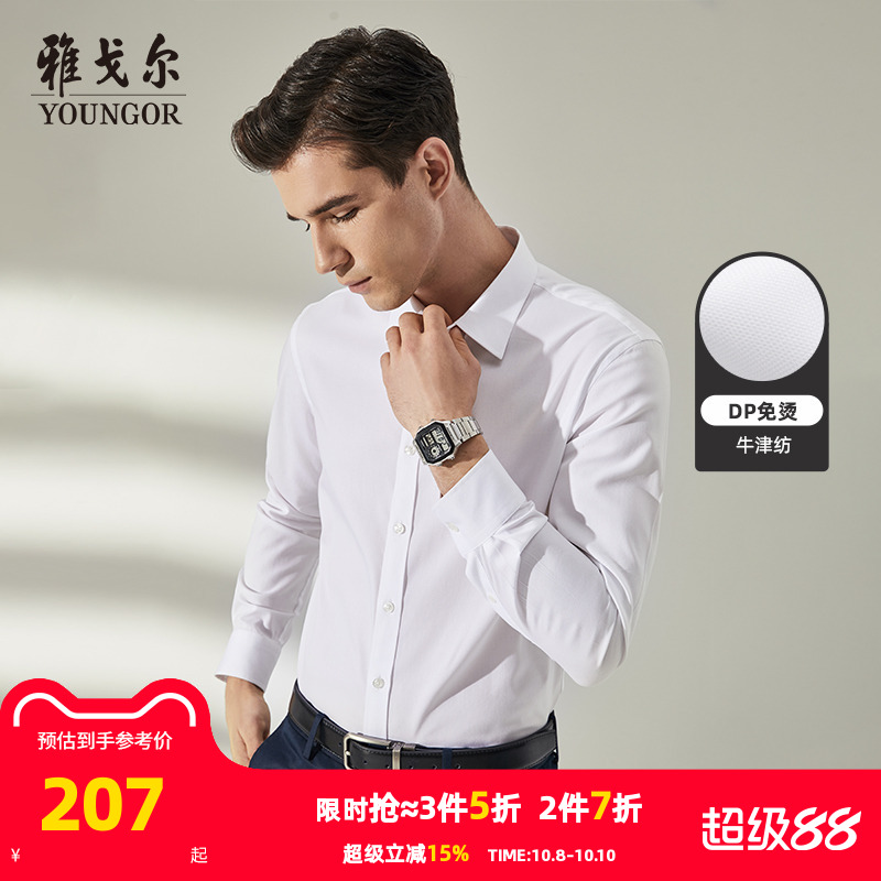 雅戈尔长袖衬衫春秋新款DP免烫商务休闲上班纯棉牛津纺衬衣