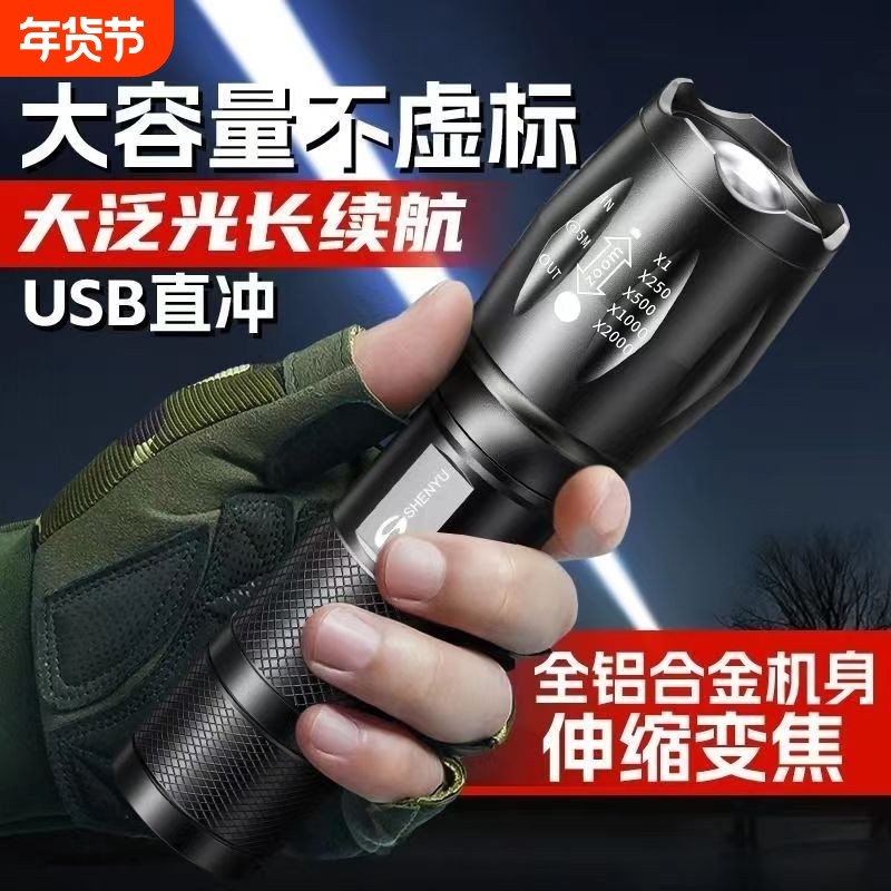 手电筒强光可充电超亮长续航远射小迷你便携家用户外耐用氙led灯